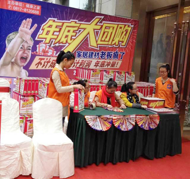 活動當天,酒店門外車水馬龍;活動大廳人潮如流。氣勢恢宏的活動,以高檔大氣的場地為依托,完美構建消費者滿意的購物盛堂。奇力作為吊頂類知名品牌,更是當仁不讓。經典咖啡色的渲染,精美展板有序組合各種美式風尚扣板、LED燈具、風暖、換氣等模塊,重點突出體驗式環境構建。甫一亮相,充滿格調韻味的美式家居環境,躍然眾人眼前。團購尚未開始,奇力展位選購狂潮已經展開。